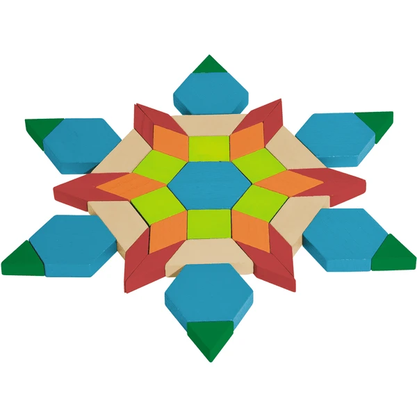 - Met de verschillende kleurrijke vormen van beukenhout kunnen mooie motieven worden gemaakt volgens de bijgeleverde sjablonen.