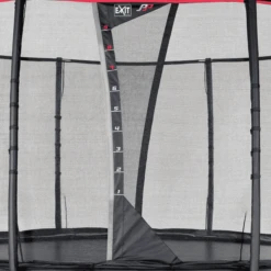 Het zwarte frame, subtiele kleurdetails en reflecterende biezen geven de grote trampoline een robuuste uitstraling.