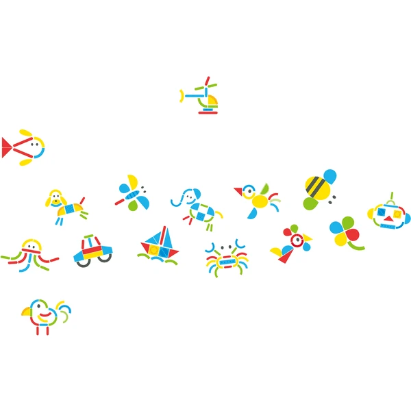 De magneten kunnen op een van de 24 meegeleverde motieven worden gelegd en inspireren tot kleurrijke eigen creaties.