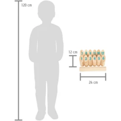- Afmetingen gemonteerd: Werpstok ca. 24 cm, Ø ca. 4 cm, nummerkegels ca. 12 cm, Ø ca. 4 cm.